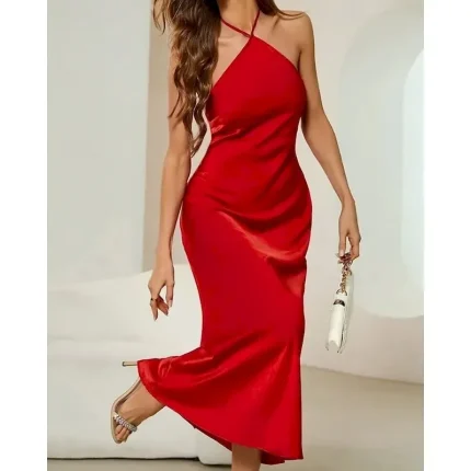 Women’s Long Dress Maxi Dress Party Dress Cocktail Dress Satin Dress Slip Dress Elegant Fashion Party Special Occasion Evening Party Regular Fit Plain Sleeveless Halter Neck Wine Red Blue Dark Green
