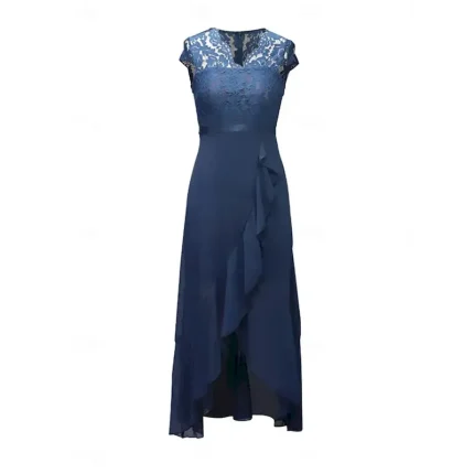 Women’s Maxi Dress Lace Dress Cocktail Dress Wedding Guest Dress Chiffon Dress Elegant Formal Wedding Guest Cocktail Party Regular Fit Short Sleeve V Neck Black Pink Red Navy Blue Summer