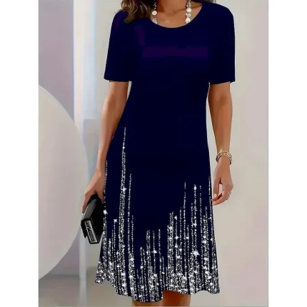 Women’s Midi Dress Elegant Party Evening Crew Neck Short Sleeve T Shirt Dress Tee Dress Shift Dress Casual Formal Daily Regular Fit Floral Abstract Short Sleeve Crew Neck Black Blue Green Spring