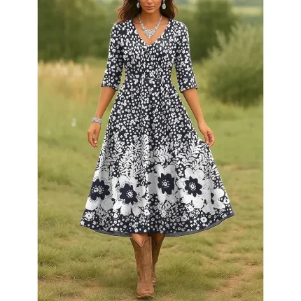 Women’s Midi Dress Casual Dress A Line Dress Vacation Casual Regular Fit Floral Graphic 3/4 Length Sleeve V Neck Pink Red Navy Blue Blue Spring Fall