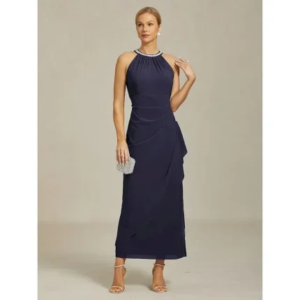 Women’s Maxi Dress Sheath Dress Elegant Party Cocktail Solid Color Sleeveless Crew Neck Navy Blue Summer