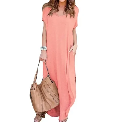 Women’s Casual Dress Long Dress Maxi Dress Cotton Pocket Split Date Maxi Basic V Neck Short Sleeve Black White Pink Color