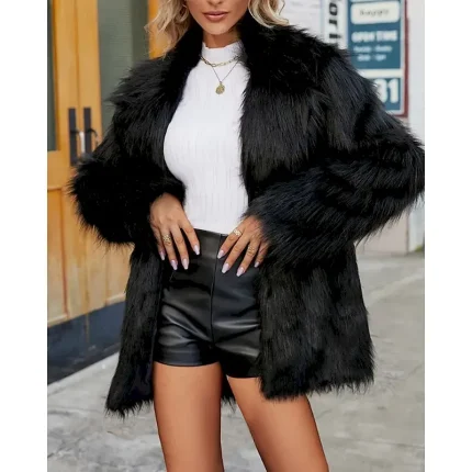 Women’s Coat Faux Fur Coat Warm Comfortable Furs & Leathers Fashion Plain Vacation Daily Wear Going out Weekend Long Turndown Regular Fit Long Sleeve Outerwear Black Fall Winter