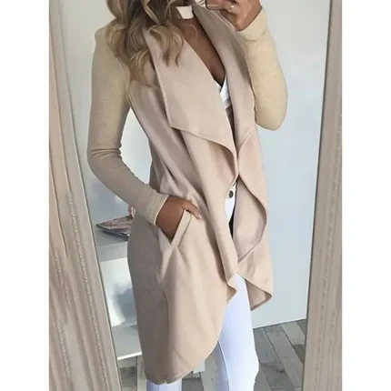 Women’s Casual Jacket Breathable Comfortable Pocket Fashion Casual Plain Vacation Street Casual Daily Wear Open Front Long Turndown Slim Long Sleeve Outerwear Black Wine Blue Summer Spring