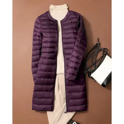 Women’s Down Jacket Coat Warm Comfortable Zipper Pocket Fashion Plain Daily Wear Going out Casual Daily Weekend Zipper Long Crewneck Regular Fit Long Sleeve Outerwear Silver Purple Khaki Fall Winter
