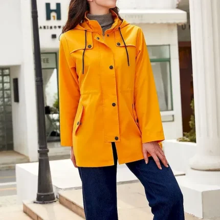 Women’s Coat Waterproof Comfortable Pocket Full Zip Fashion Street Style Plain Outdoor Casual Daily Long Hooded Regular Fit Long Sleeve Outerwear Black Yellow Pink Spring Fall