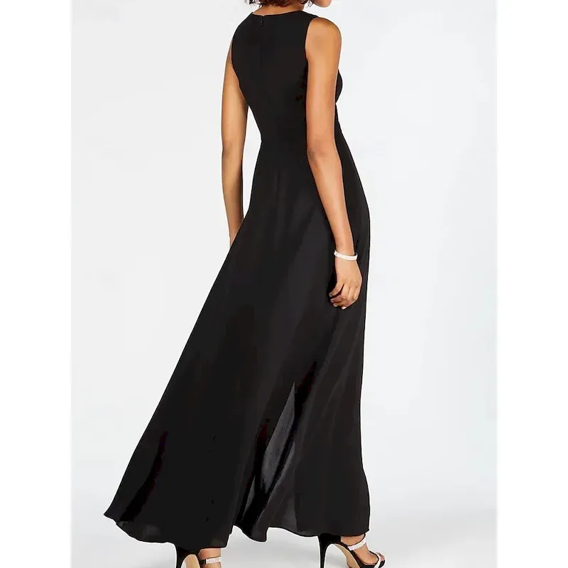 Women’s Casual Dress Maxi Dress Patchwork Elegant Crew Neck Black Rose Red Color