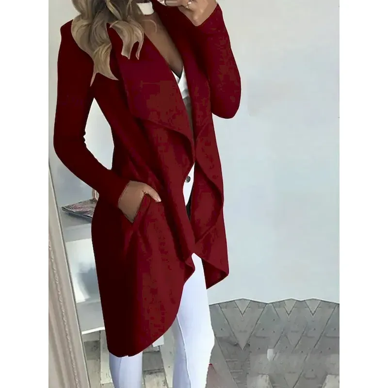 Women’s Casual Jacket Breathable Comfortable Pocket Fashion Casual Plain Vacation Street Casual Daily Wear Open Front Long Turndown Slim Long Sleeve Outerwear Black Wine Blue Summer Spring