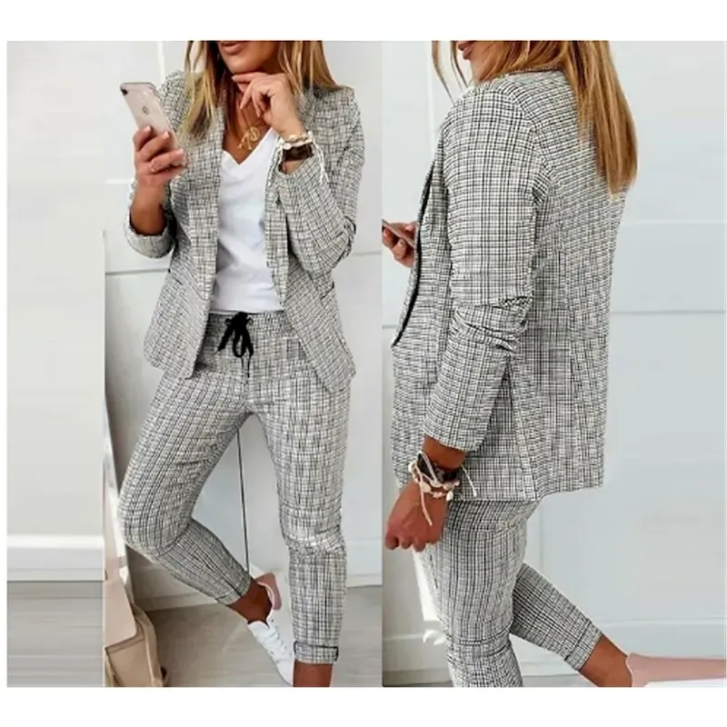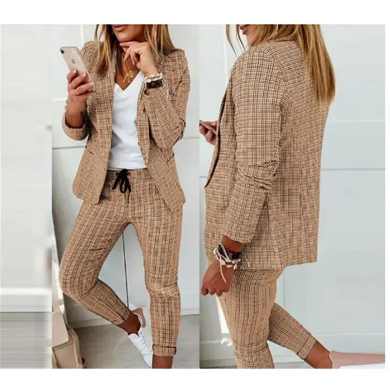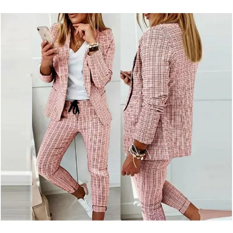 Women’s Fashion Streetwear Daily Blazer Suits Long Sleeve Shirt Collar Plaid Print Office Work Black Pink Khaki Spring Regular Fit