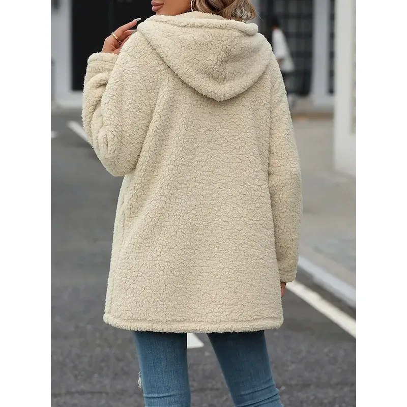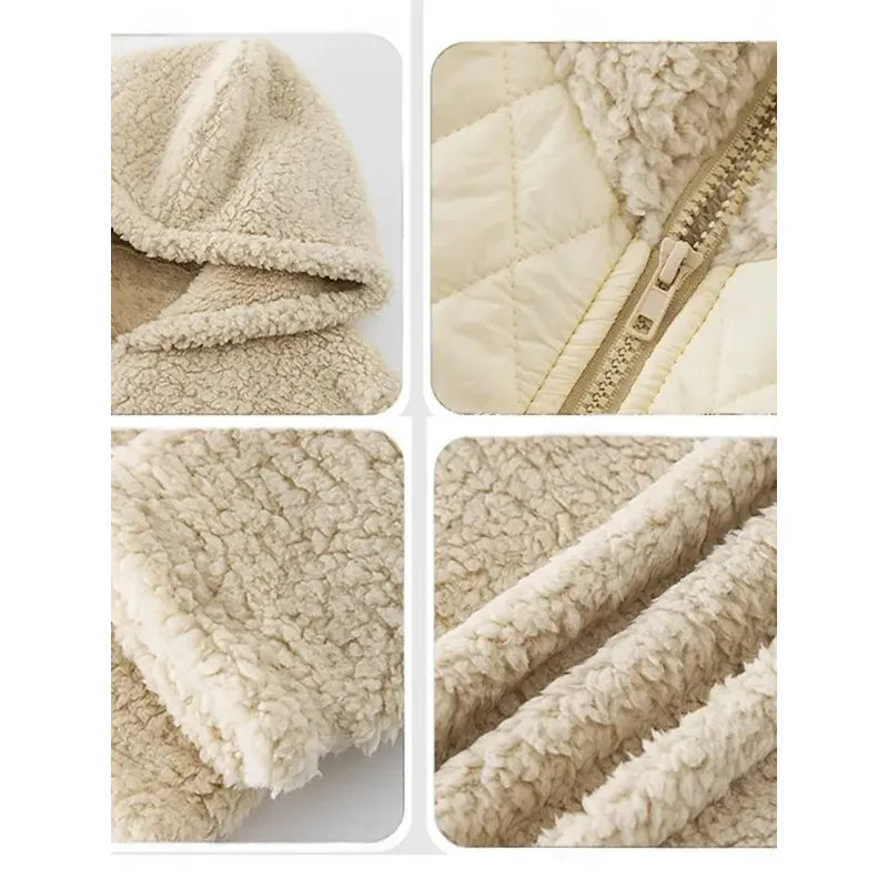 [Fabric] Crafted from plush polyester faux shearling, this jacket offers a warm and cozy feel perfect for fall and winter. The fabric’s micro-elasticity ensures a comfortable fit, making it ideal for layering over casual outfits.[Fit] Featuring a relaxed, regular fit, this jacket provides ease of movement and comfort. It’s designed with long sleeves to keep you warm during chilly weather.[Design Highlights] The jacket boasts a convenient full front zipper and a hood for added warmth and casual style. Quilted detailing on the upper front sections adds a touch of elegance and texture contrast, while side pockets offer functionality for keeping hands warm or storing small items. The fleece lining enhances warmth and comfort.[Occasions] Suitable for daily wear, vacation, street outings, and other casual occasions, this jacket effortlessly blends practicality and style. Whether you’re going out for a casual day or layering up for a chilly evening, this outerwear is a versatile choice.[Size Range] Available in sizes S through 2XL, this jacket caters to a wide range of body types, ensuring you can find the perfect fit for your needs.OK