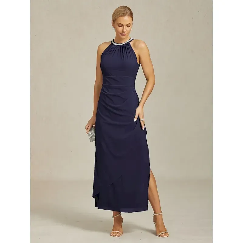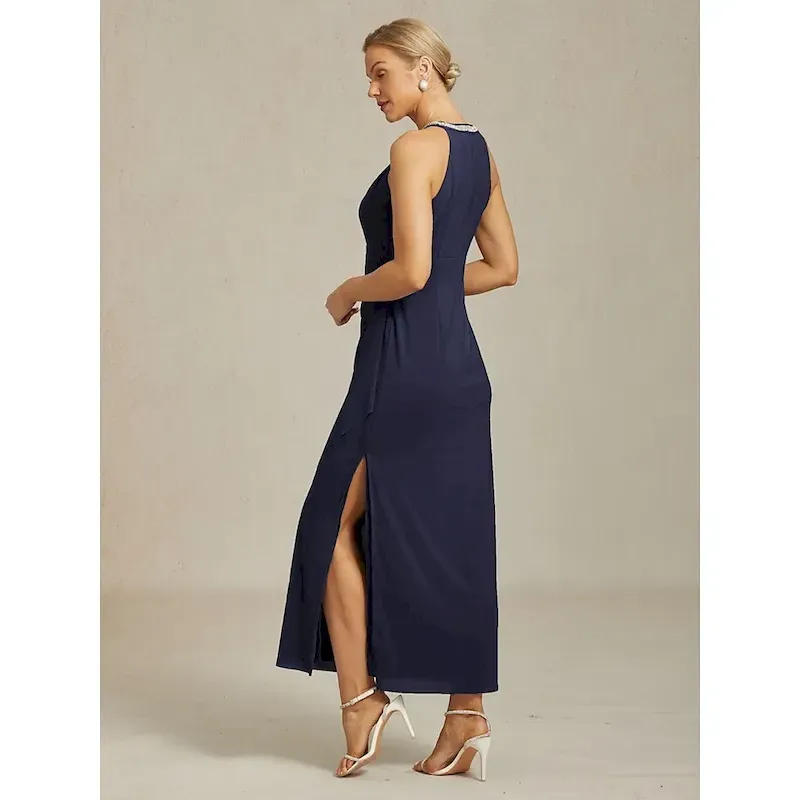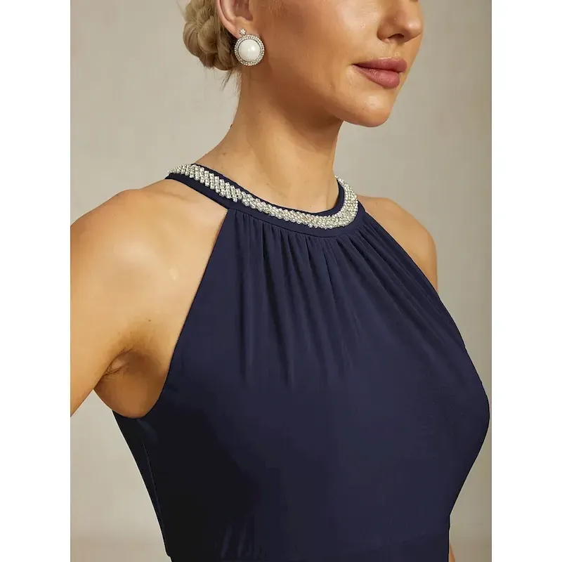 Women’s Maxi Dress Sheath Dress Elegant Party Cocktail Solid Color Sleeveless Crew Neck Navy Blue Summer