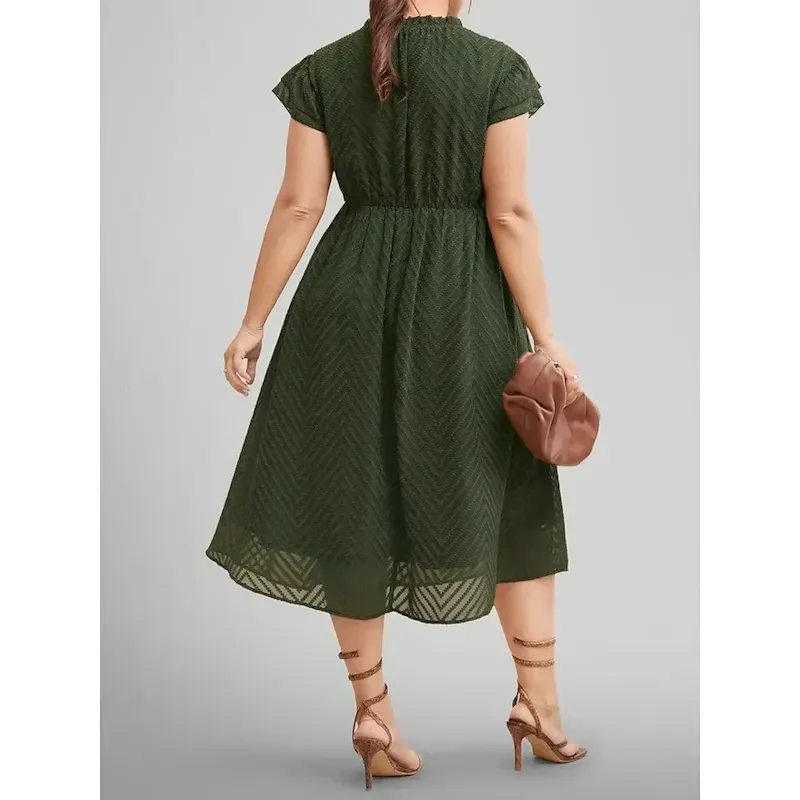 Women’s Midi Dress Casual Dress A Line Dress Basic Casual Vacation Daily Regular Fit Plain Short Sleeve Crew Neck Army Green Summer