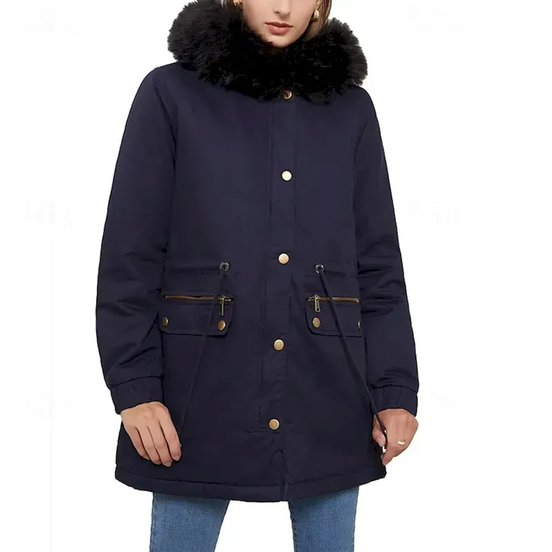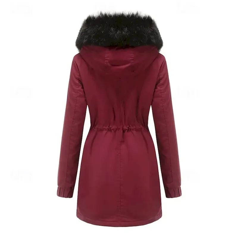 Women’s Parka Warm Comfortable Zipper Pocket With Belt Casual Solid Color Vacation Street Casual Daily Wear Long Hooded Loose Fit Long Sleeve Outerwear Navy Black Wine Fall Winter