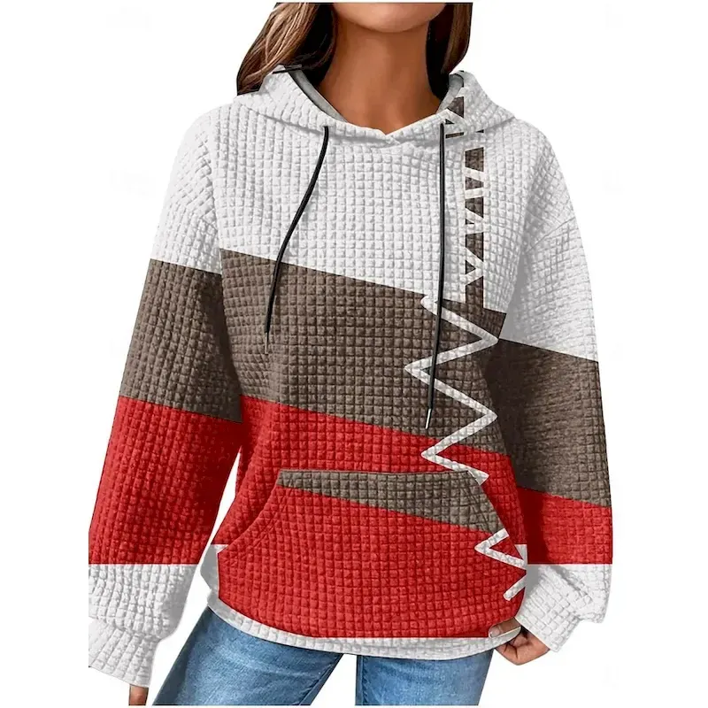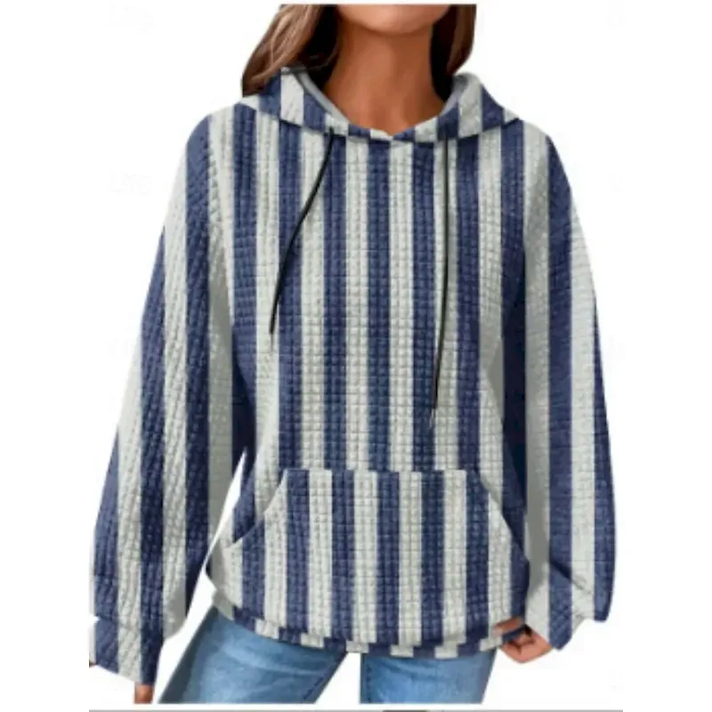 Women’s Pullover Hoodie Sweatshirt Geometric Striped Casual Long Sleeve Hooded Regular Tops Street Dailywear Pocket Print White Wine Red Blue Fall Winter