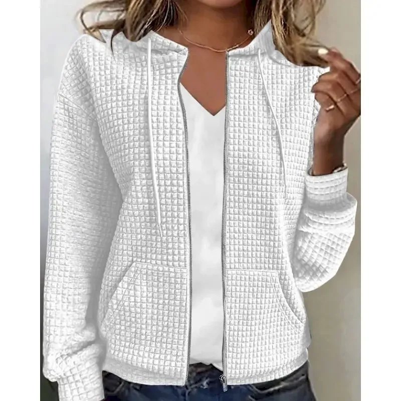 Women’s Texture Sweatshirt Waffle Sweatshirts Zip Up Sweatshirts Plain Casual Long Sleeve Crew Neck Regular Tops Street Holiday Going out Zipper Pocket Black White Blue Gray Fall Winter