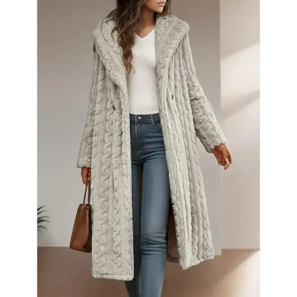 Women’s Winter Coat Street Daily Wear Going out Fall Winter Long Coat Loose Fit Warm Breathable Comtemporary Stylish Casual Jacket Long Sleeve Solid Color Knit Light Grey