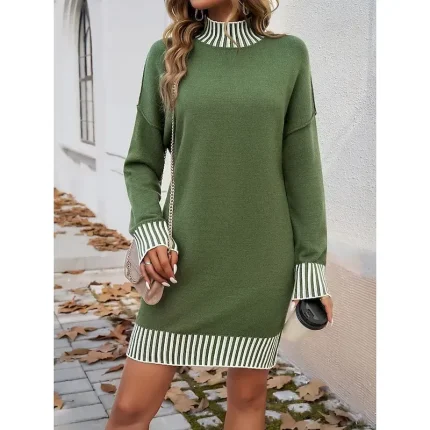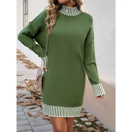 Women’s Sweater Sweater Dress Casual Soft Striped Ribbed Turtleneck Knitted Long Sleeve Regular Tops Knit Outdoor Daily Weekend Black White Fall Winter