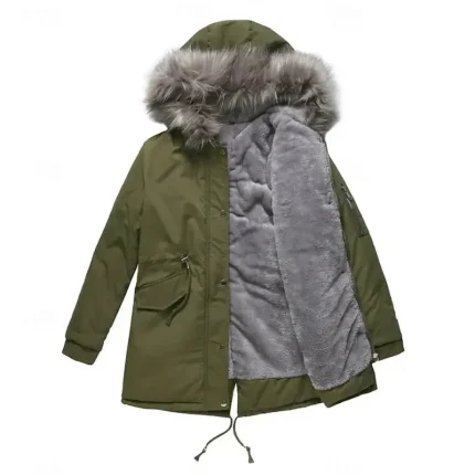 Women’s Winter Coat Windproof Warm Zipper Outdoor Solid Color Work Casual Zipper Hoodie Loose Fit Long Sleeve Outerwear Black Red Green Winter