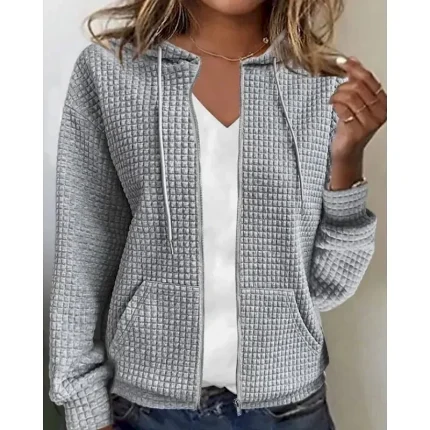 Women’s Texture Sweatshirt Waffle Sweatshirts Zip Up Sweatshirts Plain Casual Long Sleeve Crew Neck Regular Tops Street Holiday Going out Zipper Pocket Black White Blue Gray Fall Winter